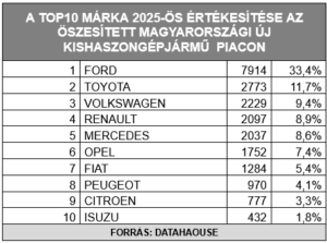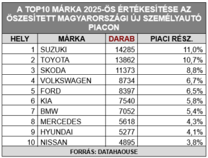 2022, 2023 és 2024 után 2025-ben is a Toyota bizonyult a legkedveltebb újautó márkának az összesített magyarországi személy és kishaszongépjármű piacon. 2025-ben 10,9 százalékos piaci részesedést jelentő, 16.635 db új Toyota talált gazdára hazánkban, így a környezettudatos japán autómárka sorozatban harmadszor védte meg 2022-ben megszerzett piacvezető pozícióját. A Toyota Csoport prémium márkája, a Lexus 1.354 db új autót értékesített tavaly hazánkban, a világ elsőszámú autógyártójának magyarországi értékesítései így 2025-ben elérték a 17.989 darabot.